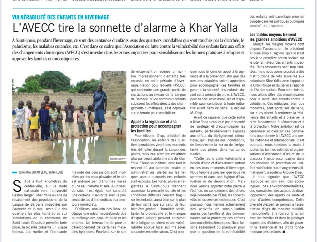 Nous avons le plaisir de vous informer que notre ami journaliste Adama Sène, mémoire des premières heures de l’association, a produit un brillant article sur l’AVECC à Saint-Louis et sur Khar Yalla. Nous le félicitons chaleureusement pour ce travail remarquable qui met en lumière et valorise notre association.